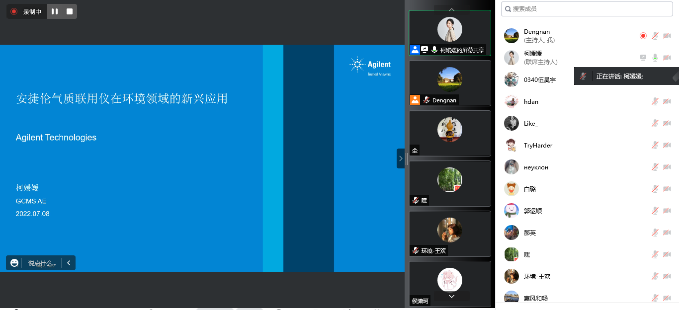本次技術(shù)交流分為上下兩個(gè)半場(chǎng),上半場(chǎng)介紹了氣相色譜質(zhì)譜聯(lián)用(gc-ms,gc-ms/ms)的組成、工作原理、方法參數(shù)設(shè)置技巧、定性定量分析方法及環(huán)境樣品常采用的前處理方式。下半場(chǎng)從分析方法自動(dòng)化技術(shù)、大氣中硝基多環(huán)芳烴的檢測(cè)、環(huán)境中持久性有機(jī)污染物分析、二噁英的分析方案、微塑料及環(huán)境暴露組學(xué)等方面詳細(xì)介紹了gc-ms/ms技術(shù)在國(guó)內(nèi)外環(huán)境研究領(lǐng)域的應(yīng)用,為同學(xué)們的科學(xué)研究提供了新思路,拓寬了環(huán)境研究領(lǐng)域的視野。
