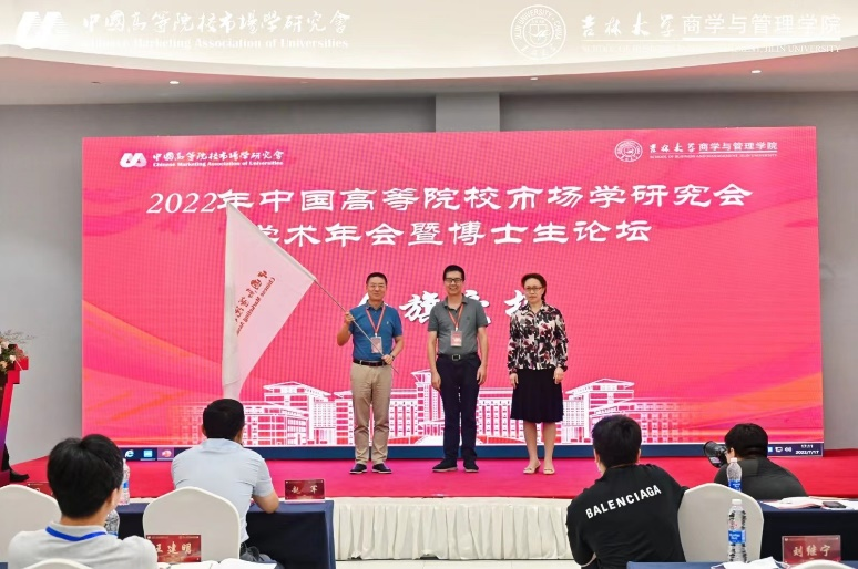 閉幕式上,武漢大學黃敏學教授對學術年會論文評選流程作了詳細介紹。大會頒發了會議論文優秀獎、最佳論文獎、優秀志愿者獎。符國群為吉林大學商學與管理學院頒發承辦方紀念獎牌,金曉彤與下一屆年會承辦單位負責人武漢大學汪濤教授進行了會旗交接。吉林大學商學與管理學院黨委書記趙軍教授致辭,華東理工大學景奉杰教授發表參會感言。最后,武漢大學汪濤教授作會議總結并致閉幕辭。