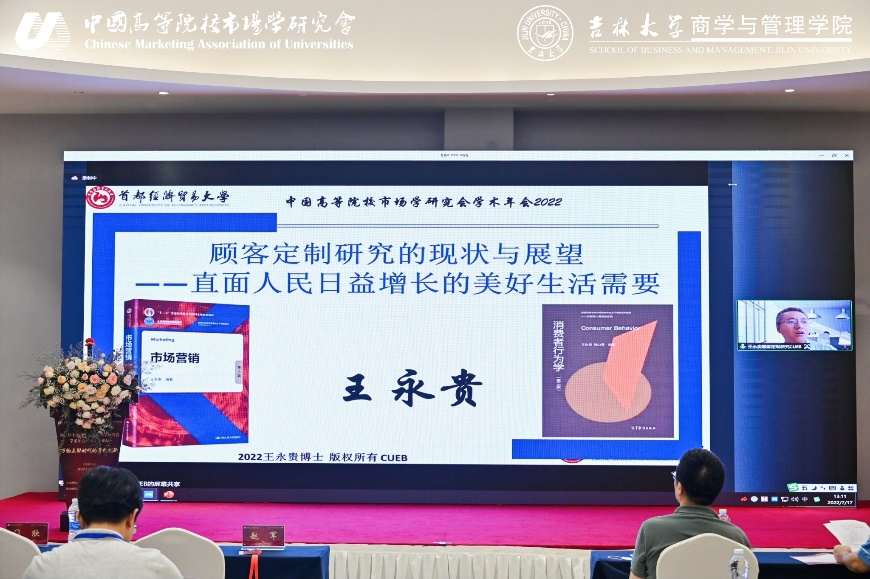 閉幕式主題演講于7月17日下午進行,共有6位嘉賓作主題演講。首都經貿大學副校長、王永貴教授以“顧客定制研究:現狀與展望”為題,在數字化的背景下對顧客定制的未來研究方向進行了創新性的探討。中山大學管理學院王海忠教授以“數字超鏈接時代的品牌研究”為題,分享了數字超鏈接時代品牌功能、品牌價值、品牌戰略管理的新變化。復旦大學管理學院金立印教授以“中國消費者價值觀:關系個體模型的分析框架”為題,分享了價值觀研究的理論框架、范式方法及研究思路。在企業家與案例研究專家對話環節,中國第一汽車集團有限公司體系數字化部的門欣總經理以“一汽數字化轉型探索”為題介紹了一汽的數字化轉型實踐。南開大學商學院的許暉教授在“案例研究的探索與開發:面向營銷領域的組合應用”的主題演講中,與門欣進行了理論與實踐的對話。見數平臺創始人、中央財經大學商學院助理教授姚凱老師以“內卷時代如何提升市場研究效率”為題作了主題分享。華東理工大學景奉杰教授、北京大學彭泗清教授、浙江財經大學王建明教授、中南財經政法大學費顯政教授、吉林大學盛光華教授分別擔任以上6位嘉賓演講的主持人。