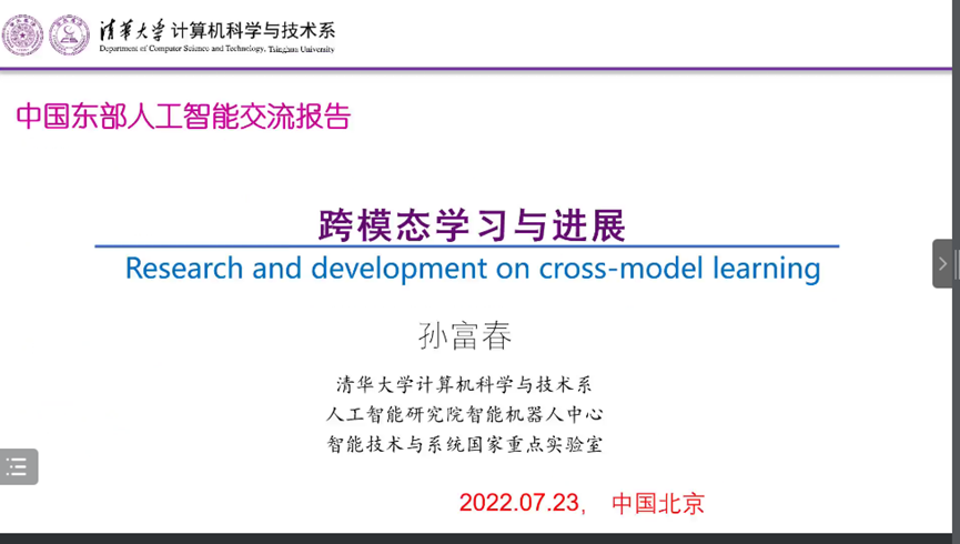 孫富春教授,中國(guó)人工智能學(xué)會(huì)副理事長(zhǎng)、ieee 會(huì)士、caai 會(huì)士、國(guó)家杰青、清華大學(xué)計(jì)算機(jī)科學(xué)與技術(shù)系教授、清華大學(xué)校學(xué)術(shù)委員會(huì)委員、智能技術(shù)與系統(tǒng)國(guó)家重點(diǎn)實(shí)驗(yàn)室常務(wù)副主任,報(bào)告主題是“跨模態(tài)學(xué)習(xí)的研究與進(jìn)展”。