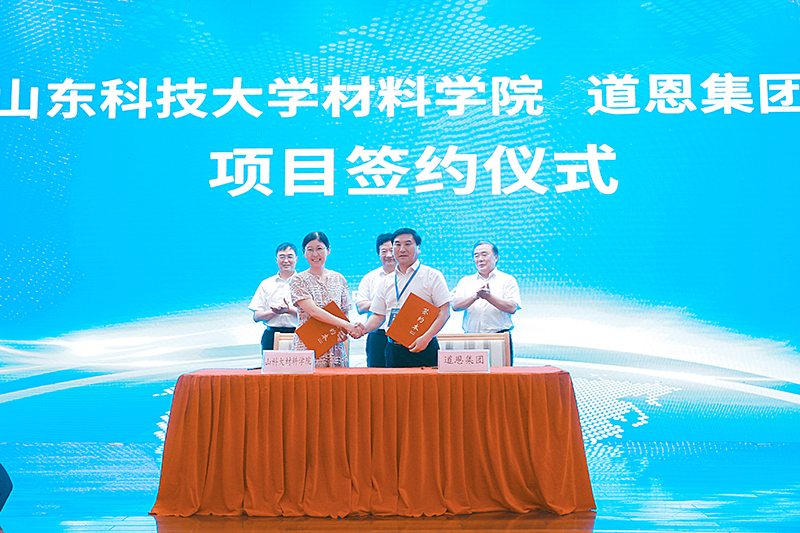儀式上,山東科技大學機電學院、化工學院、材料學院分別與煙臺市道恩集團、山東坤泰新材料科技股份有限公司、煙臺金鵬礦業機械有限公司簽訂項目合作協議。