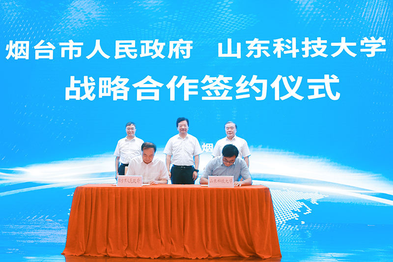 8月8日,山東科技大學與煙臺市政府舉行戰略合作協議簽訂儀式暨產學研現場對接會。山東科技大學黨委副書記、校長姚慶國,煙臺市委副書記、市長鄭德雁分別致辭,煙臺市副市長韓耀東主持,山東科技大學副校長張建,煙臺市委常委、組織部部長、統戰部部長高建廣出席儀式。張建與韓耀東代表雙方簽訂戰略合作協議。
