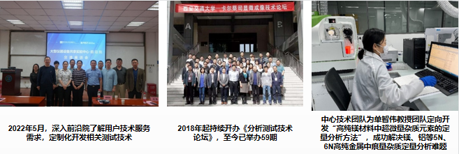 5年來,中心在做好常規分析測試服務的基礎上,圍繞學科需求不斷完善設備配置、整合技術力量,形成了“材料原位實驗與測試平臺”“飛納結構表征平臺”“材料成分定量分析平臺”“分子動態結構實驗平臺”“真空互聯實驗與測試平臺”五大特色技術支撐平臺,為跨學科、跨領域特殊環境下材料構效關鍵技術問題研究提供技術支撐,促進前沿基礎研究和技術創新應用融合,推動學科交叉創新和成果轉化應用。