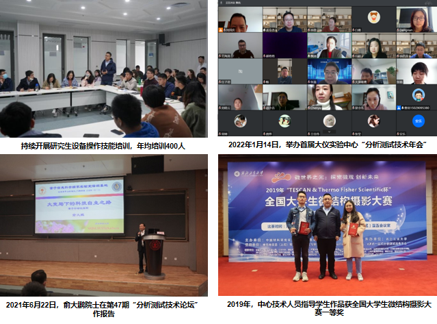 5年來,中心積極發揮公共平臺協同育人功能,面向研究生和高年級本科生開設學校唯一聚焦儀器設備技術交流的分析測試技術論壇,累積舉辦59期,邀請專家報告131場,累計參與人數5500人次。堅持學生自主上機培訓,培養學生操作高精尖大型設備能力,提升學生科研素養與就業優勢,每年常態化培養自主上機學生400人次;配合學院承擔“計算材料學”“生命科學儀器操作與實驗安全”“材料現代分析”等課程實踐教學。瞄準儀器功能研發,聯合培養工程碩士8名,首屆畢業生分別赴西北有色金屬研究院、日本九州大學等單位工作或深造。關注培養學生科學與藝術精神,組織并指導學生參加全國微結構攝影大賽等多項競賽活動,累積獲得各類獎項30項。