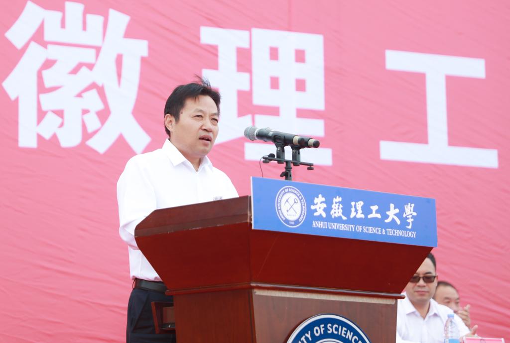 在全場熱烈的掌聲中,袁亮發表了熱情洋溢的講話。“四個月前,我向高考學子發出邀請,歡迎大家報考安徽理工大學,攜手一起向未來。今天,大家如約而至。看著校園里一張張青春的面龐,我有一種‘得天下英才而育之’的喜悅和自豪。”袁亮代表全校師生員工對2022級新同學加入安徽理工大學這個大家庭表示熱烈歡迎。