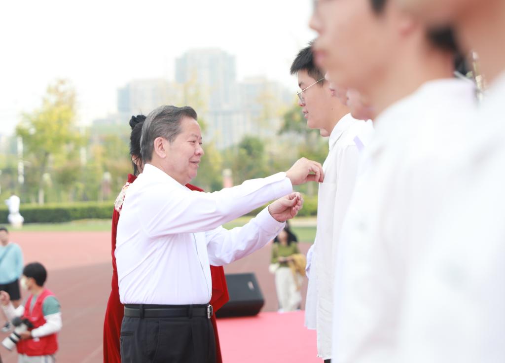 典禮上,袁亮為新生代表佩戴校徽。從佩戴上安徽理工大學徽章的那一刻起,標志著同學們成為了一名真正的“安理人”,也賦予了同學們新的責任與使命。