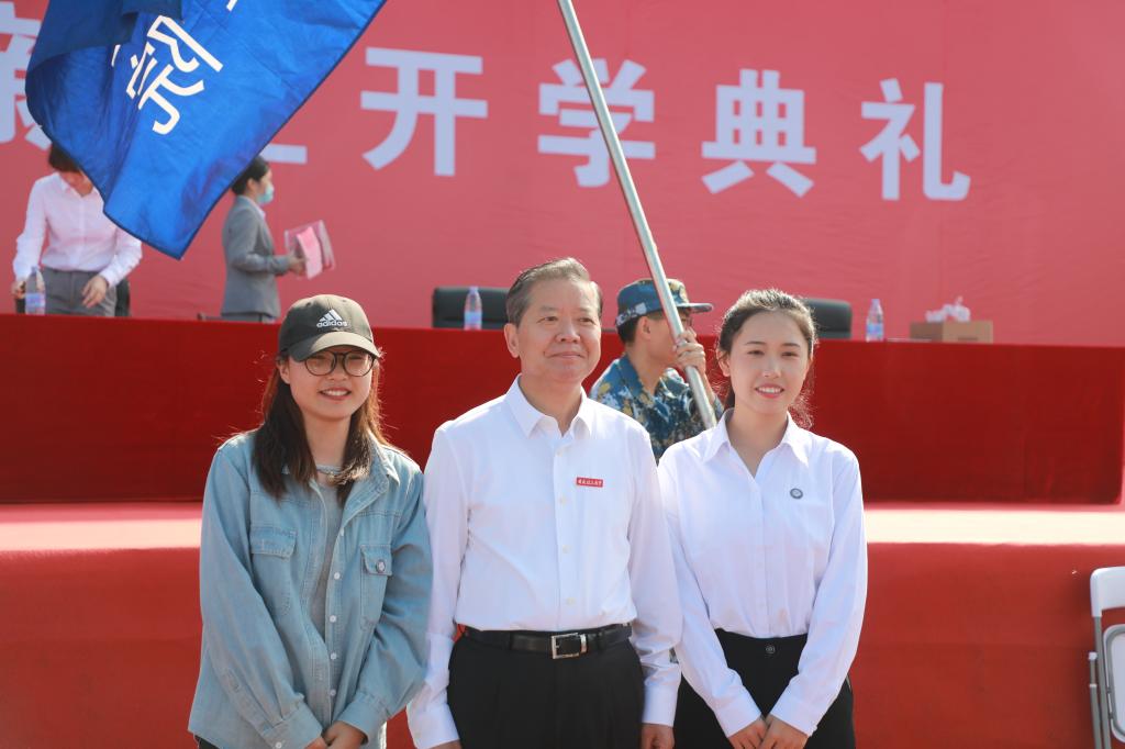 開學典禮在全場師生莊嚴的國歌聲中拉開序幕。“淮水泱泱,淮山蒼蒼,北挽黃河,南攜長江;求真務實,追求卓越,志存高遠,天道路長……”伴隨著校歌《大學無疆》慷慨激昂的旋律,護旗手們擎著1500平米的巨幅校旗從新生方陣中穿過,當校旗經過每一位新生的頭頂上方時,大家激動地高舉雙手觸摸校旗,共同感受身為安理人的這份光榮。