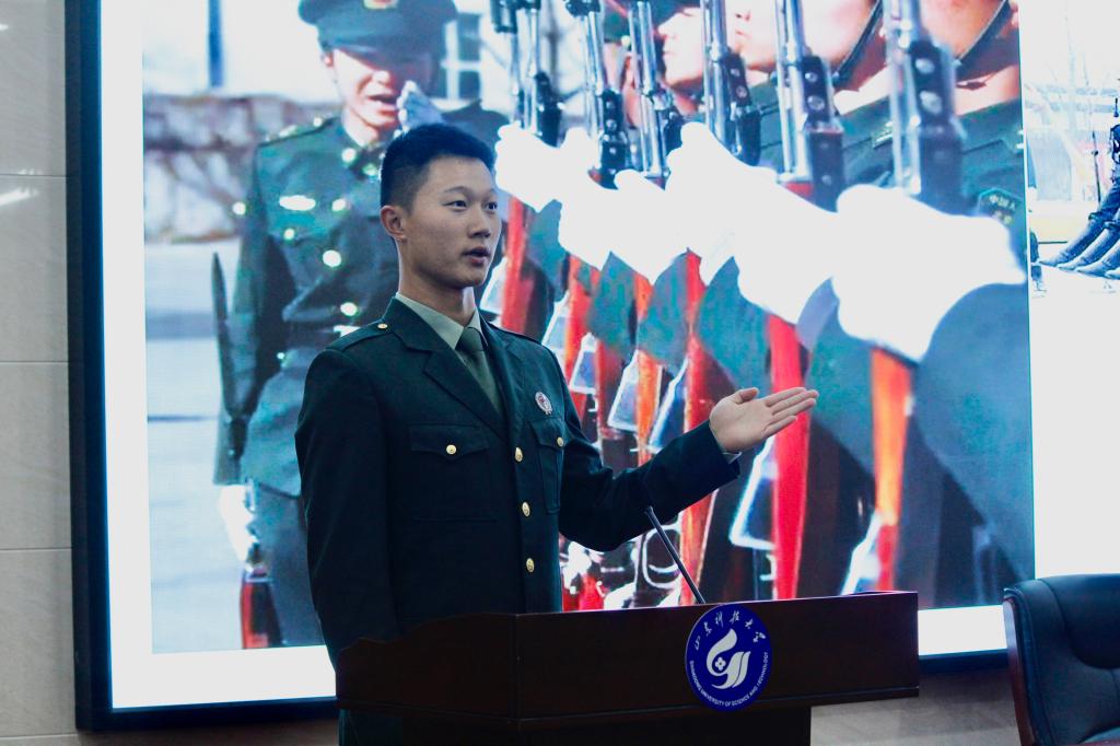 徐越,2016年考入山東科技大學,2018年應征入伍,退役復學后就讀于自動化專業2019級1班。服役期間,入選中國人民解放軍儀仗大隊,完成“一帶一路”峰會論壇、北京延慶世園會開幕式、中國武漢第七屆世界軍人運動會等近三十次儀仗司禮任務,2019年作為標兵參加中華人民共和國成立七十周年閱兵慶典任務,榮獲兩次個人嘉獎。退役重返校園后,發揮標兵精神,積極參加學校征兵和新生軍訓工作,投身學校國旗護衛隊和社區疫情防控工作,獲“西門子杯”中國智能制造挑戰賽華東賽區一等獎等競賽獎勵。2021年6月榮獲第四屆全國大學生就業創業典型人物,2021年11月獲評西海岸新區最美青年,2022年6月當選共青團山東省第十五次代表大會代表。徐越以實際行動爭當校園先鋒、爭做學創模范,踐行“請黨放心 強國有我”的青春誓言。