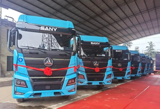 此次20臺江山ev550交付三強新能源公司,是三一重卡在四川雅安首個批量訂單,全面交付運營,已在當地形成一道靚麗的“天海藍”風景線。