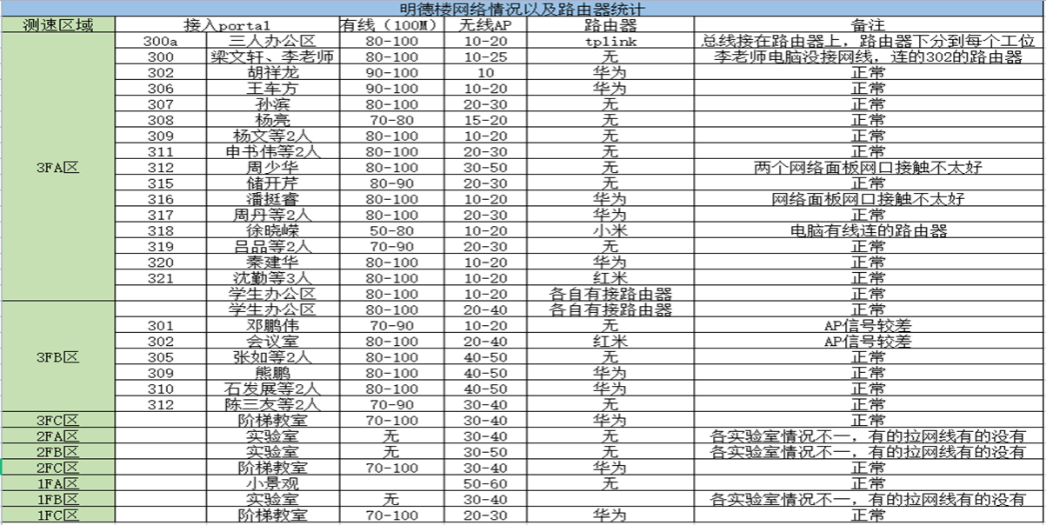 為解決師生反映的網(wǎng)絡(luò)差、網(wǎng)速慢等問題,蘇州高研院對相關(guān)科研人員的工作場所以及公共教室展開了地毯式的網(wǎng)絡(luò)問題排查,對網(wǎng)絡(luò)進(jìn)行測速,并統(tǒng)計有線網(wǎng)、無線ap和路由器的網(wǎng)絡(luò)情況。根據(jù)檢測結(jié)果,進(jìn)行問題整改,切實保障科研人員的工作網(wǎng)絡(luò)需求。