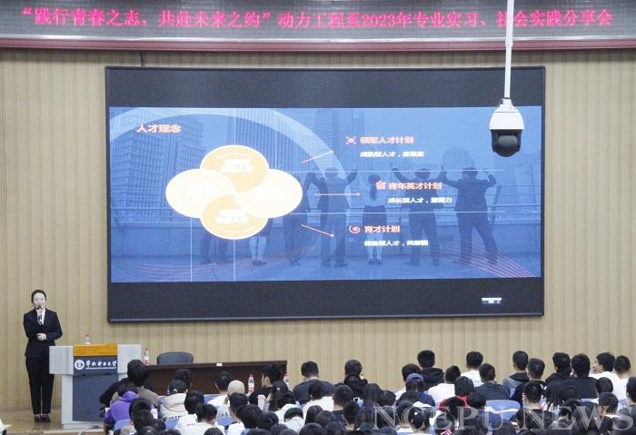 本網(wǎng)保定訊:10月17日下午,動(dòng)力工程系在教六一階舉辦“踐行青春之志,共赴未來(lái)之約”專業(yè)實(shí)習(xí)、社會(huì)實(shí)踐分享會(huì)。深圳能源集團(tuán)任丘深能環(huán)保有限公司總經(jīng)理李松軍,深能河源電廠企業(yè)文化宣傳張卓然,動(dòng)力工程系2023級(jí)輔導(dǎo)員夏瑜澤以及21、22、23級(jí)450余名學(xué)生參加活動(dòng),會(huì)議由系團(tuán)委書記周碩主持。
