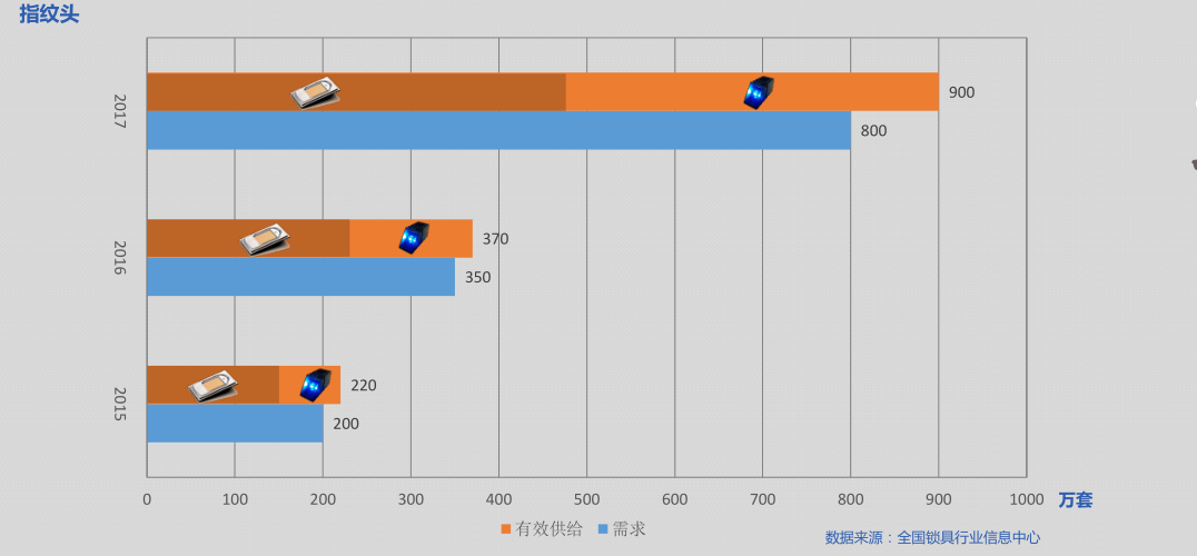 近幾年,光學(xué)指紋頭的供給基本能滿足智能鎖市場的需求,但是高端半導(dǎo)體指紋頭存在一定的結(jié)構(gòu)性供給短缺,2018年半導(dǎo)體指紋智能鎖的占比將超過光學(xué)識別。
