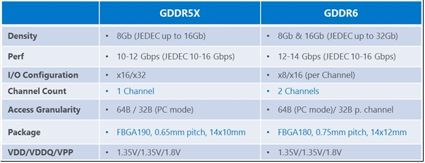 今晨,美光在官方博客發(fā)布技術(shù)文章,表示GDDR6顯存已經(jīng)完成所有的設計工作并通過了內(nèi)部驗證,首發(fā)的分別是針腳帶寬12Gbps和14Gbps的芯片。
