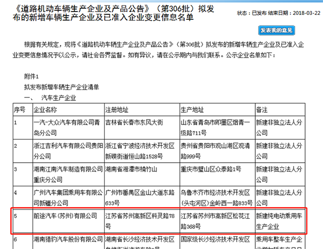此前,在獲得國(guó)家發(fā)改委批復(fù)的15家車(chē)企中,已經(jīng)獲得工信部新建純電動(dòng)乘用車(chē)生產(chǎn)資質(zhì)的有北汽新能源、云度汽車(chē)、江鈴汽車(chē)、知豆汽車(chē)、以及長(zhǎng)江汽車(chē)共5家車(chē)企,因此前途汽車(chē)成為第6家獲得工信部準(zhǔn)入的企業(yè)。