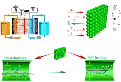 中科院大連化物所儲能技術研究部的研究者們在這一思路的指導下研發了上述的長壽命可自恢復的鋅碘液流電池技術,通過使用廉價的聚烯烴多孔膜和高穩定性電解液實現電池的長期循環以及電池短路后的自恢復。