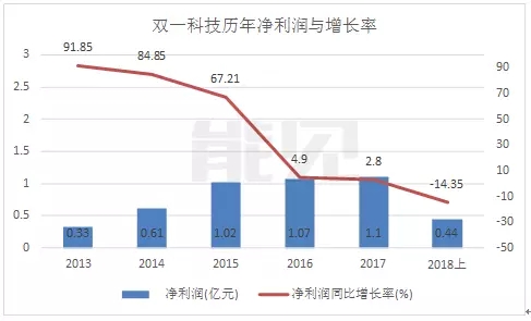 受2017年行業(yè)低迷影響,雙一科技2018年上半年歸屬于上市公司股東的凈利潤(rùn)為4406萬元,同比下降14.35%。