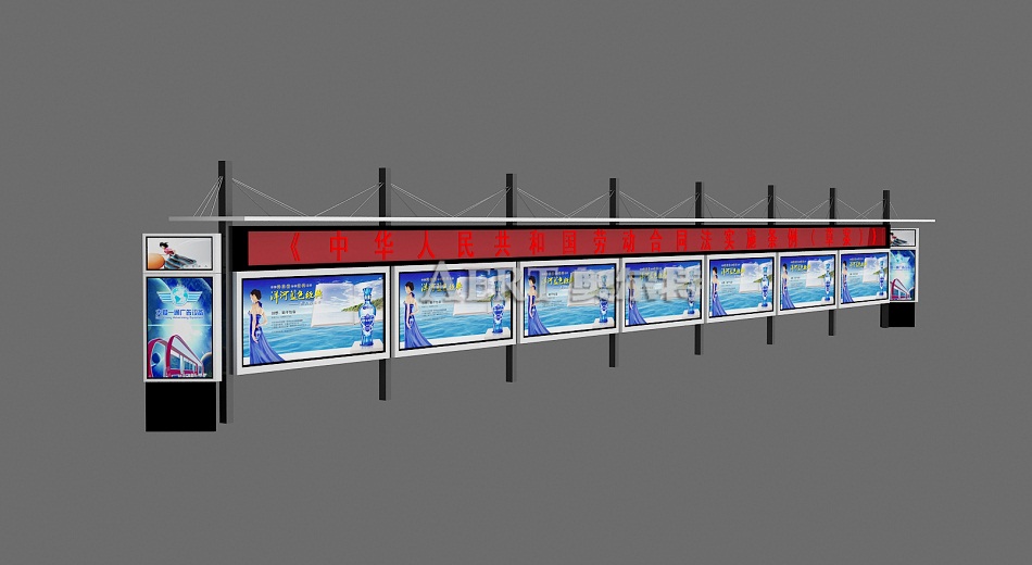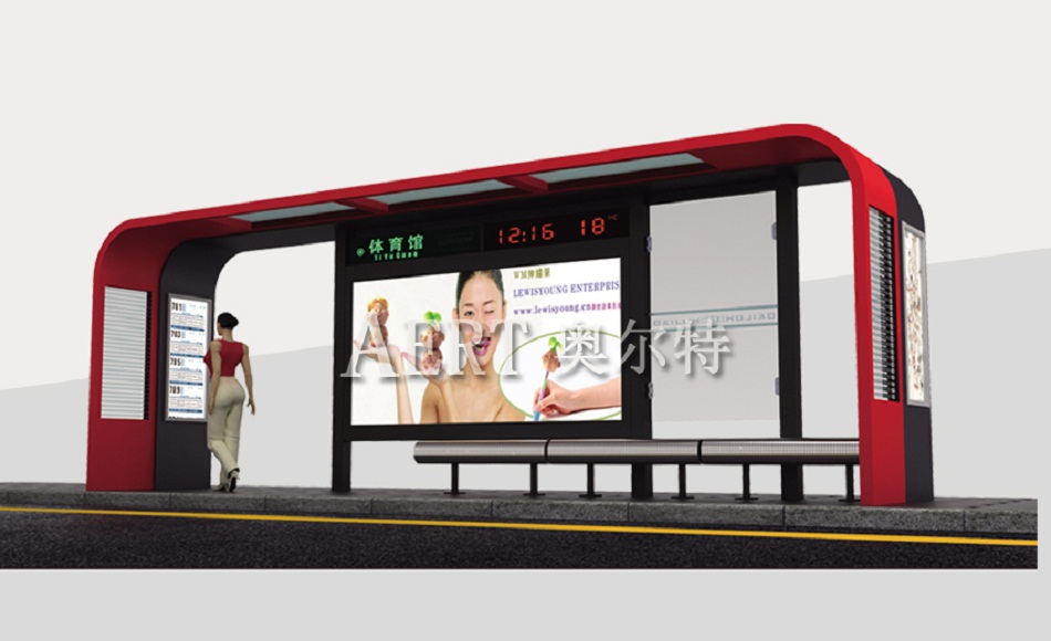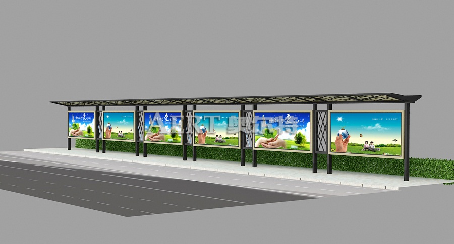不銹鋼板或鍍鋅板是候車亭最主要的材料,也有采用鋁型材的,但比較少見。其他主要材料還有PC耐力板,用在燈箱兩面,就是廣告畫面外面透明的那層板;鋁塑板,用在頂棚的下面,就是抬頭看到的那部分;鍍鋅板,一般用在頂棚上面和燈箱的主框。