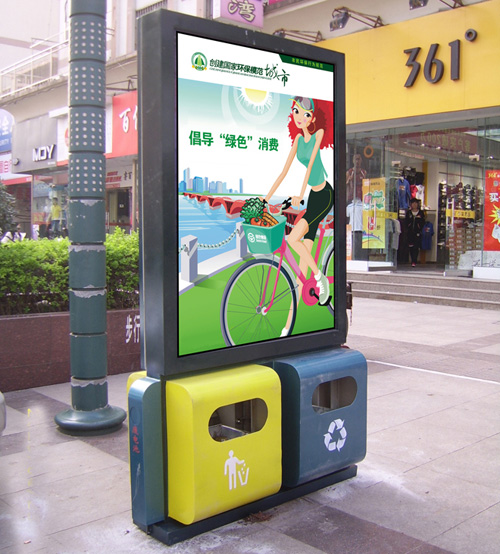 然而作為這個廣告媒介的傳播,現在已不是像一些大城市才會有的功能延伸,不管是上海,北京,廣州,深圳越來越多的城鎮也已經將廣告垃圾箱作為了城市表情的闡述,作為城市的宣傳時政的方針,宣傳市政的要領,并做到傳播城市的的景觀。現代化的廣告垃圾箱正在為我們城市添加更動人的魅力表情。