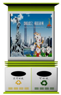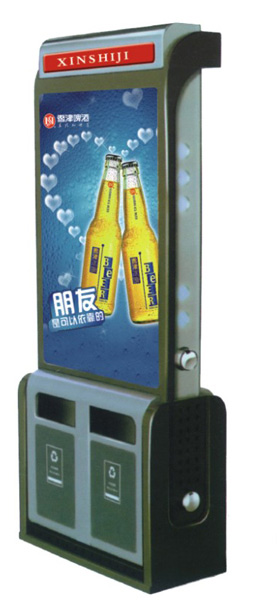 廣告垃圾箱不是簡單的純廣告性質的傳媒工具,其具有與生俱來的公益性、環保性的特性。廣告垃圾箱也不再是單一的垃圾收集容器,它擁有的新型功能已經大大超出其原有的垃圾桶概念。城市垃圾箱廣告燈箱與人們的生活朝夕相伴,它滲透到城市的各個角落,滲透到生活的每個細節。廣告垃圾箱燈箱,可以無處不在。還有些新型垃圾桶如多彩垃圾桶,就是垃圾桶外觀實現多彩。外觀獨特,做工精細,表面處理技術有電鍍, 多彩金屬垃圾桶有噴塑。