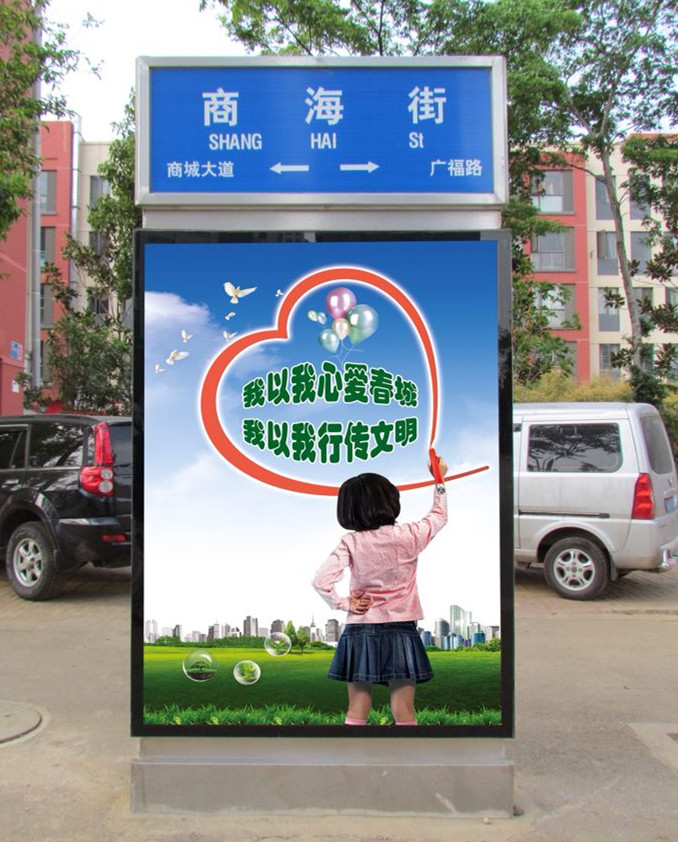 路名牌燈箱:路名牌是城市公共設施之一,設在每條道路的路口處,是用來給行人和車輛指明道路和前進方向的,故其位置非常醒目。有的廣告公司將指路牌路名牌與廣告燈箱的完美相結合,形成了指路牌路名牌燈箱,于是指路牌路名牌燈箱成了時下寵兒。指路牌路名牌燈箱一般在公路或交通要道兩側,而指路牌路名牌燈箱不僅有指路牌的所有優勢,白天為行人指路,在漫長黑夜里就真的是一盞燈,既可指路同時溫暖著夜行者的心。有這樣優勢的指路牌路名牌燈箱上,打一些廣告能給固定消費者提供反復的醒目宣傳,相當于在繁華街道上開設了分店,對于想投資此塊的企業來說無疑是一個不二選擇。