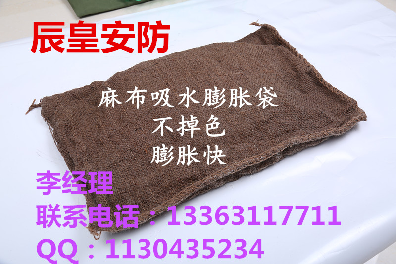 (二)吸水膨脹袋堤壩升高: 根據水情預告,洪水位將超過設計洪水位甚至可能超過堤壩,在洪水來臨之前,用吸水袋在堤頂臨水一邊搶修子埝,以防漫溢。具體使用方法: 吸水袋膨脹后,把它分層錯篷壘筑壓緊,為了避免層間滲漏,應在層間添加散土。如果能配合塑料薄膜使用,防滲效果更好。