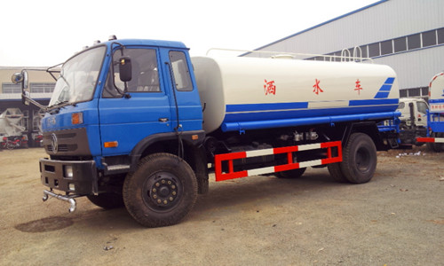 五、(東風153)12噸灑水車:駕駛室一排半、可以前翻、發動機康明斯170-180馬力發動機、900尼龍胎、罐體容積12.5立方、鋼板厚度4毫米、灑水車功能配置:前沖后灑、側噴、罐體后置工作平臺、綠化灑水炮、射程30米。