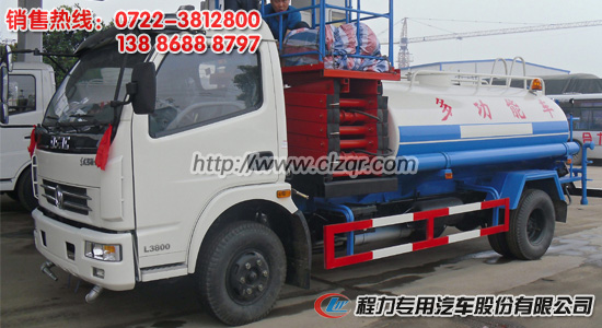 灑水車,又稱多功能灑水車、綠化噴灑車、園林綠化灑水車、水罐車、運水車、拉水車、送水車、水槽車、水車等,根據不同的用途和使用環境灑水車有多種噴灑或運水功能。程力專用汽車股份有限公司生產的多功能灑水車適合于各種路面灑水、噴霧、噴藥、降溫、除塵、沖洗塵埃贓物,亦可用于園林綠化、市政環衛、工地降塵、路面養護及應急消防、運輸飲用水等。
