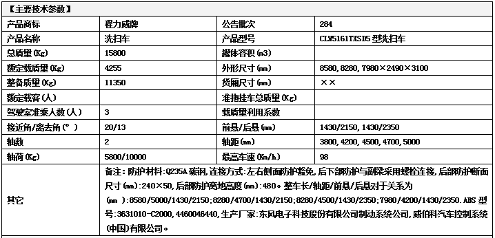 CLW5161TXSD5型道路洗掃車產(chǎn)品主要技術(shù)參數(shù)↓↓↓
