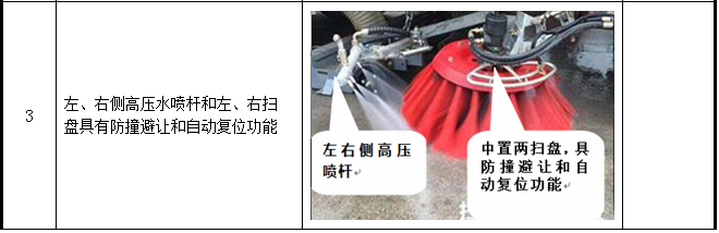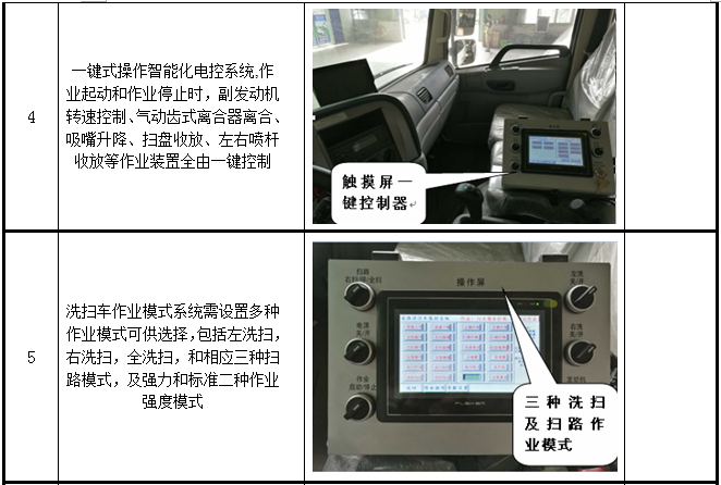 采用東風(fēng)天錦國(guó)五底盤(pán),康明斯180馬力,9.00R20鋼絲胎,5000軸距,帶原廠空調(diào).改裝部份,東風(fēng)康明斯170馬力副發(fā)動(dòng)機(jī),免維護(hù)自動(dòng)離合器,雙軸座大型免維護(hù)風(fēng)機(jī).合資電磁閥組,意大利高壓泵.耐磨液壓油缸,觸摸屏控制系統(tǒng),左右、后噴霧壓塵系統(tǒng),不銹鋼垃圾箱及不銹鋼水箱,水箱容積8-9立方,垃圾箱容積7立方,最大清寬度3.5米,量大清掃面積每小時(shí)50000m2-100000m2,前置兩掃盤(pán),中置吸盤(pán),隨車配備高壓洗功能,加裝前噴霧、中沖、后噴霧、20米洗車卷盤(pán)、垃圾箱自潔裝置。