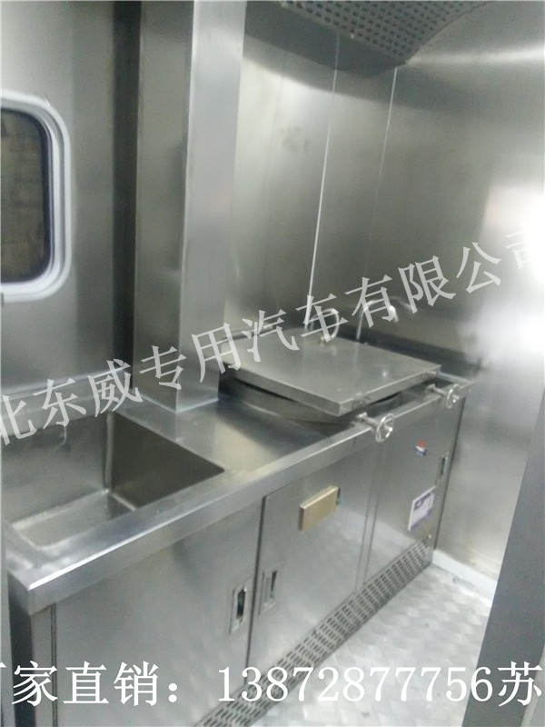 宿營車上,設置了床位,衛生間,軍用空調,換氣逃生窗口,高原灶,抽油煙機,衛星電視,煙霧傳感器,照明設備,發電機,保險柜,暖風機。這輛車上面廚房,廁所,床鋪一應俱全,保證了官兵住宿的舒適性,使官兵更好的執行野外任務。
