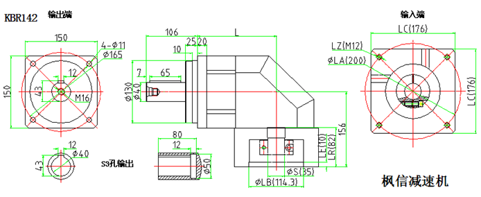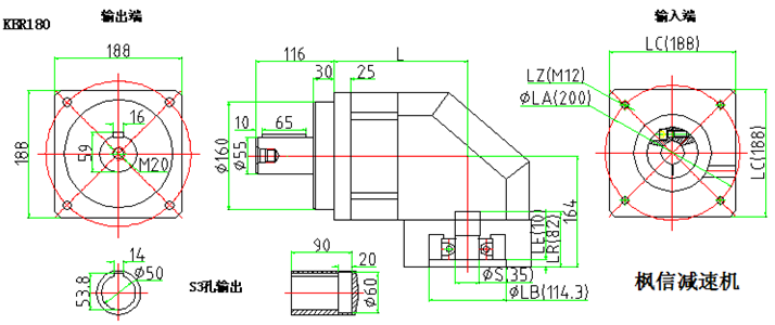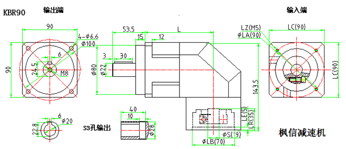 分KBR40、KBR60、KBR90、KBR115、KBR142、KBR180、KBR220、KBR280直角式常用機座型號,速比:3~1000有20多種比速可選擇;分一級、二級和三級減速傳動;精度:一級傳動精度在5-8弧分,二級傳動精度在7-10弧分;三級傳動精度在9-12弧分;有數(shù)百種規(guī)格。產品型號例如:KBR142-32-S2-P2。