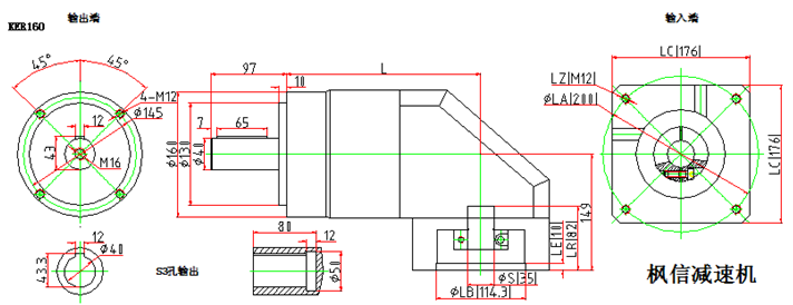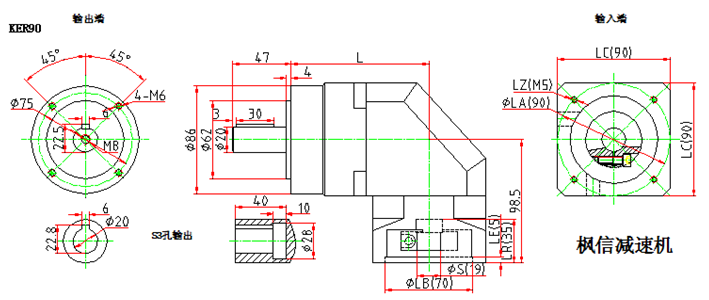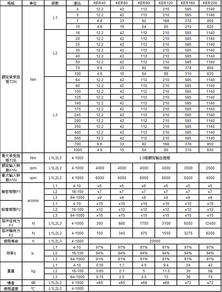 為經濟型圓形不帶法蘭設計,型號分:KER40、KER60、KER90、KER120、KER160、KER200機座型號。速比:4~1000有20多種比速可選擇;分一、二、三級減速傳動;精度:一級傳動精度在6-12弧分,二級傳動精度在8-15弧分,三級傳動精度在12-18弧分。有數百種規格。