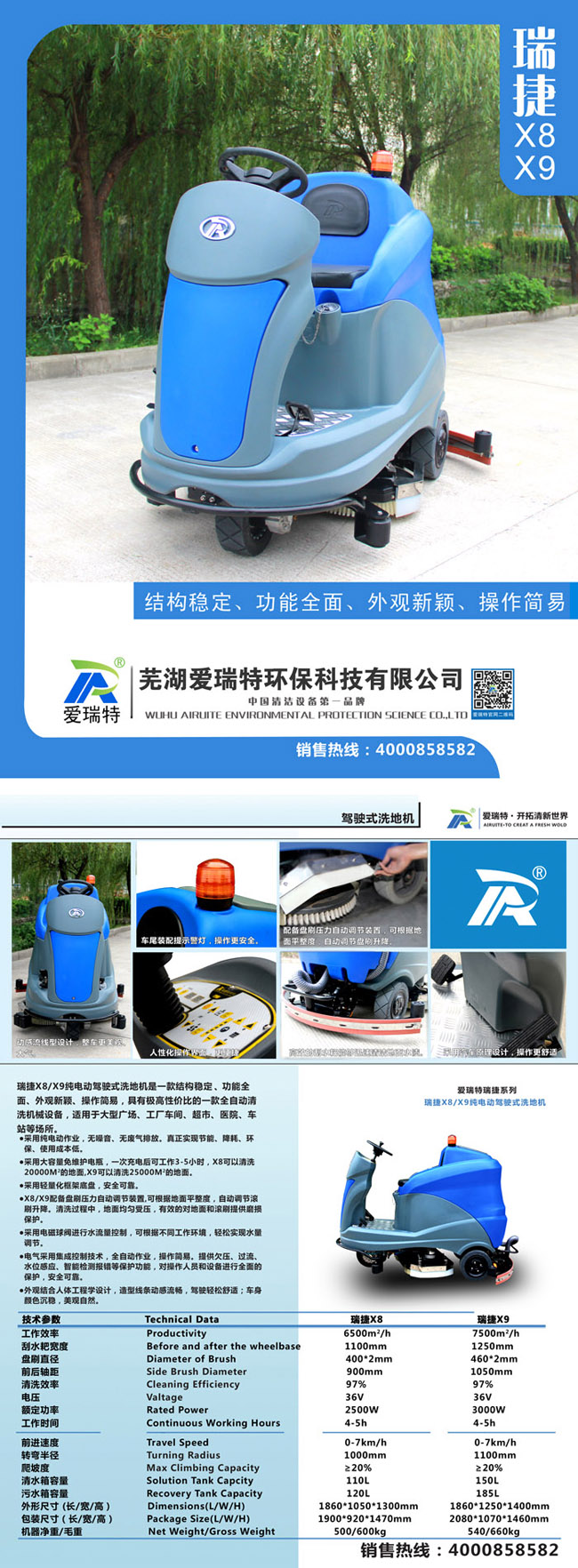 1、清潔效率高,駕駛式洗地機,每小時可洗地吸干3千多平方米。可代替20名人
