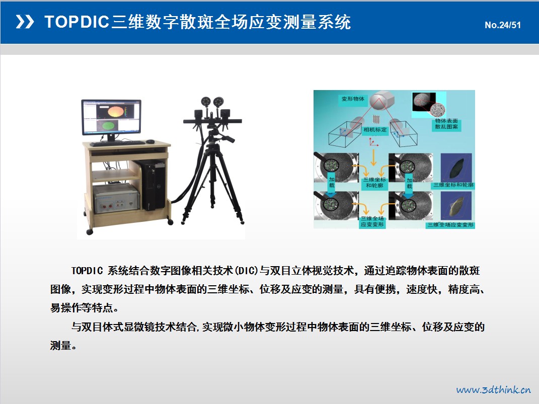 XTDIC三維全場應變測量分析系統,結合數字圖像相關技術(DIC)與雙目立體視覺技術,通過追蹤物體表面的散斑圖像,實現變形過程中物體表面的三維坐標、位移及應變的測量,具有便攜,速度快,精度高,易操作等特點。