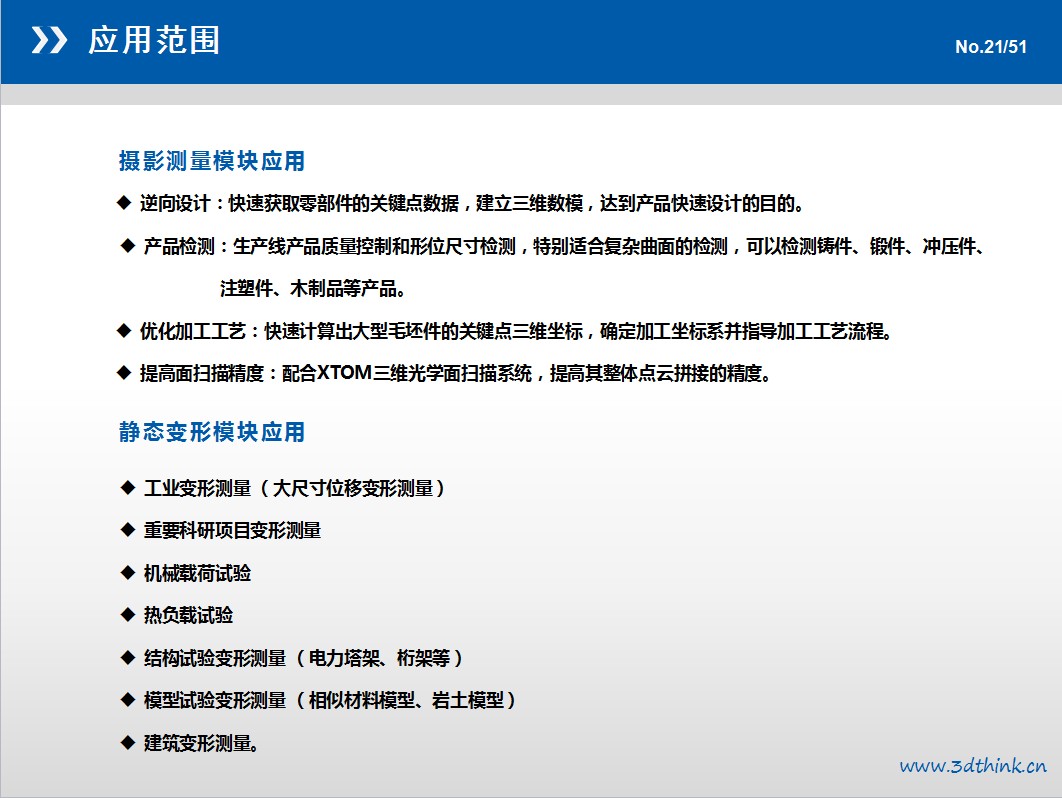 XTDP三維光學攝影測量系統,使用普通單反相機(非量測相機),通過多幅二維照片,基于工業近景攝影測量原理,重建工件表面關鍵點三維坐標。用于對中型、大型(幾米到幾十米)物體的關鍵點進行三維測量。與傳統三座標測量儀相比,沒有機械行程限制,不受被測物體的大小、體積、外形的限制,能夠有效減少累積誤差,提高整體三維數據的測量精度。可以代替傳統的激光跟蹤儀、關節臂、經緯儀等,而且沒有繁瑣的移站問題,方便大型工件測量。