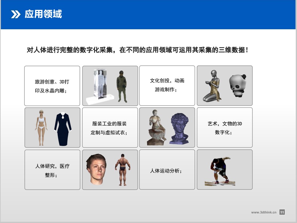 2 掃描精度為0.1mm~0.2mm,多個測量頭模塊化組合和同步控制,實現(xiàn)人體面部、頭部、上身、全身的三維掃描。速度快,精度高,數(shù)據(jù)精細。