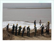 (5)施工時,應避免石塊,重物直接砸在土工膜上,最好邊施工,邊鋪設膜,邊覆蓋保護層