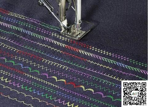 標準配備了14種類20個花樣的曲折縫T型線跡,裝飾縫。通過控制送布結構的脈沖馬達,可在高速下進行連續縫制。 |