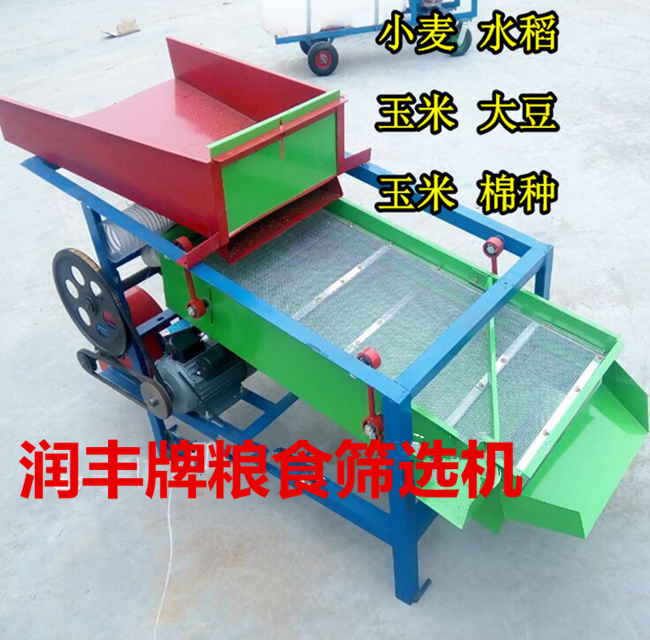 小型清理篩的優(yōu)點(diǎn): 該精選篩為二層篩網(wǎng),先經(jīng)過(guò)進(jìn)料口處風(fēng)機(jī)抽風(fēng),直接抽走重量輕的雜葉或麥秸稈,上層篩的初次篩分再把大雜清理過(guò),好的糧食(種子)直接落到下層篩網(wǎng)上,下層篩網(wǎng)會(huì)把糧食(種子)中的小雜.小石子.有缺陷的糧食(種子)直接漏掉,完好的糧食(種子)會(huì)從出料口篩分出來(lái)。該小型清糧機(jī)解決了揚(yáng)場(chǎng)機(jī)的功能單一,不能有效去除石子.土塊的缺陷,更能為清理.凈選糧食(種子)帶來(lái)滿意的效果。該機(jī)有占地小,移動(dòng)方便,便以維修,除塵除雜效率明顯,能耗低,使用簡(jiǎn)便等優(yōu)點(diǎn)。
