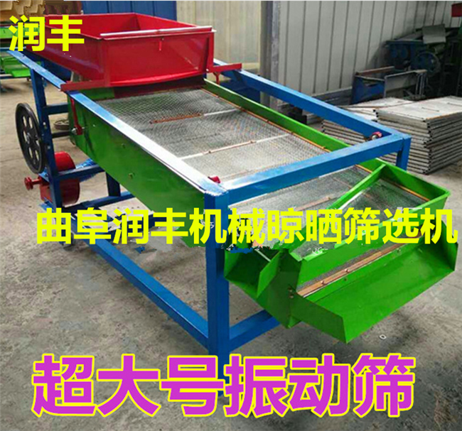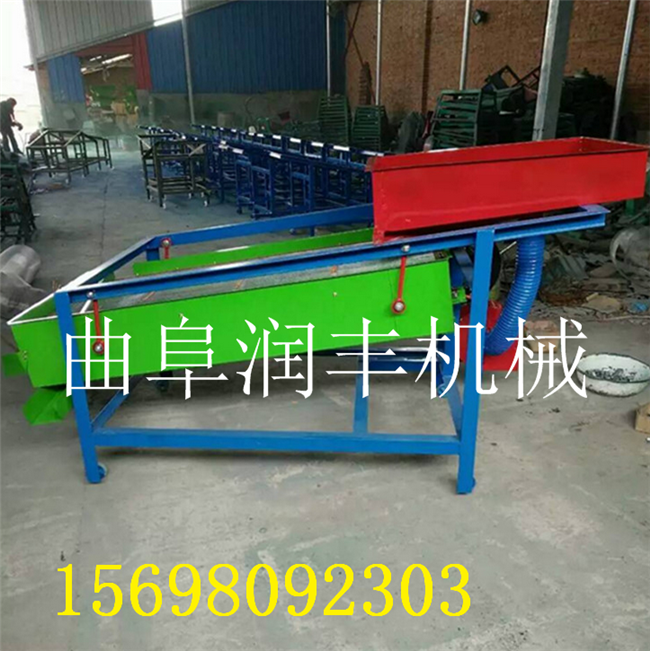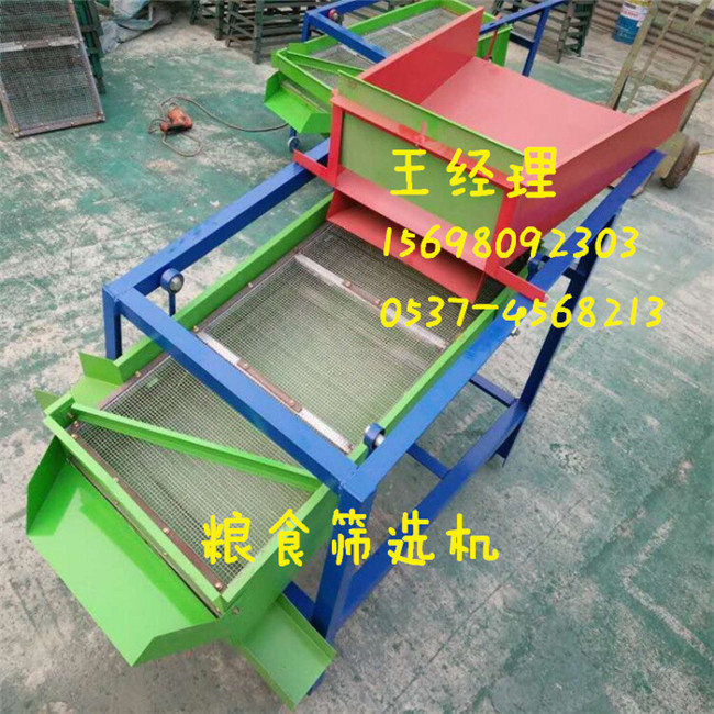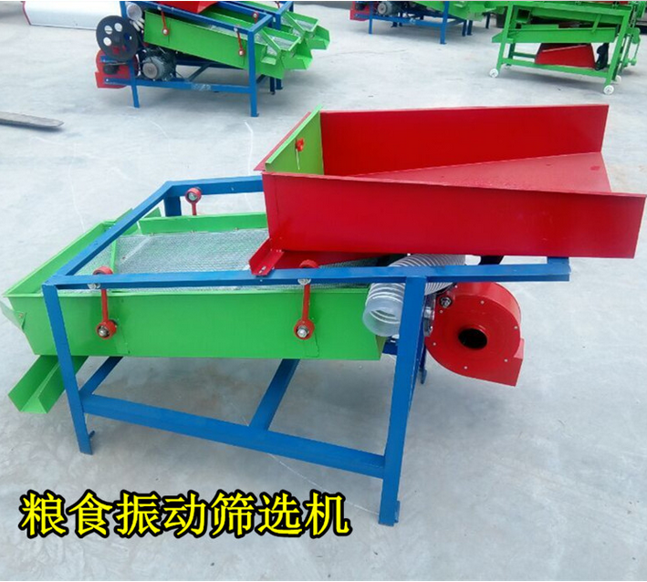 小型清理篩的優點: 該精選篩為二層篩網,先經過進料口處風機抽風,直接抽走重量輕的雜葉或麥秸稈,上層篩的初次篩分再把大雜清理過,好的糧食(種子)直接落到下層篩網上,下層篩網會把糧食(種子)中的小雜.小石子.有缺陷的糧食(種子)直接漏掉,完好的糧食(種子)會從出料口篩分出來。該小型清糧機解決了揚場機的功能單一,不能有效去除石子.土塊的缺陷,更能為清理.凈選糧食(種子)帶來滿意的效果。該機有占地小,移動方便,便以維修,除塵除雜效率明顯,能耗低,使用簡便等優點。