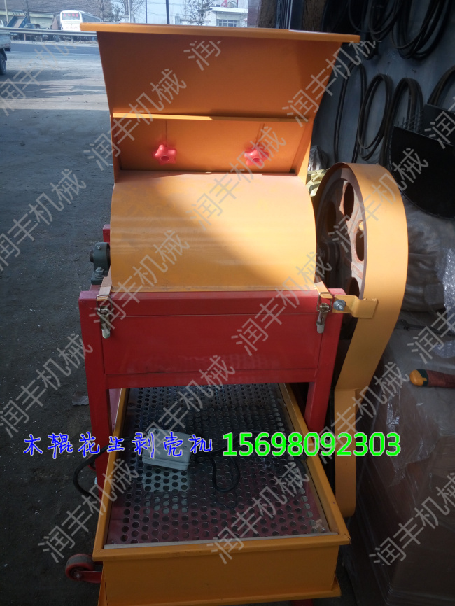 花生剝殼機有機架、風扇、轉(zhuǎn)子、單相電機、篩網(wǎng)(有大小兩種)、入料斗、震動篩、三角帶輪及其傳動三角帶等組成。