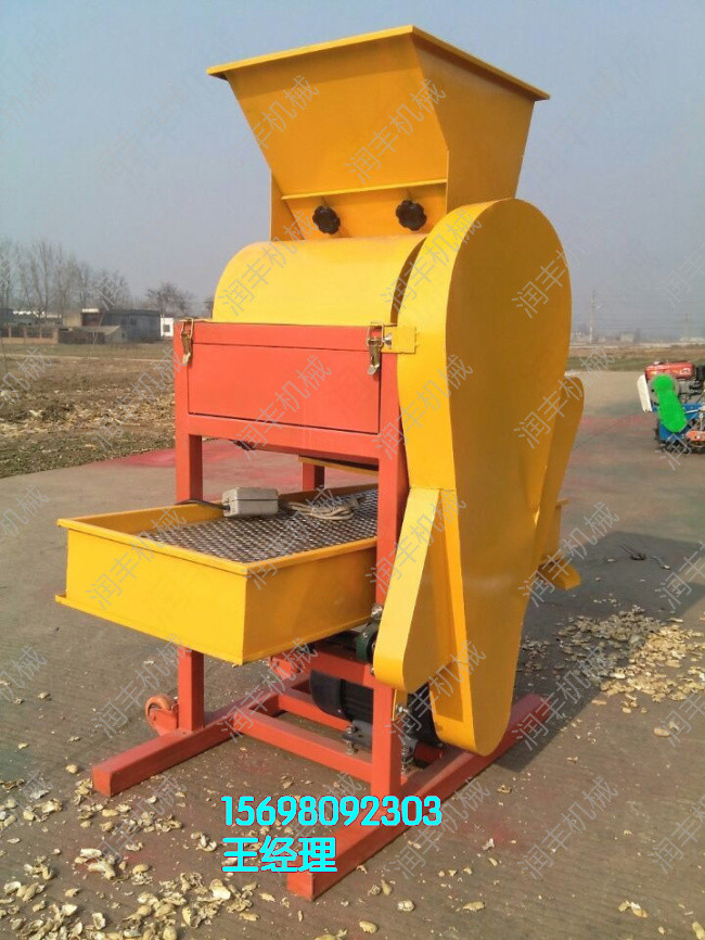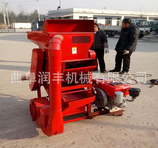 山東曲阜潤豐機械廠新研制的花生脫殼機械,雙風機,帶震動篩,脫殼率98%。碎米率5%以內,分檢清楚,殼米分離良好,震動篩可以把大小米區分,產量大,耗電少,是加工花生的理想機械。