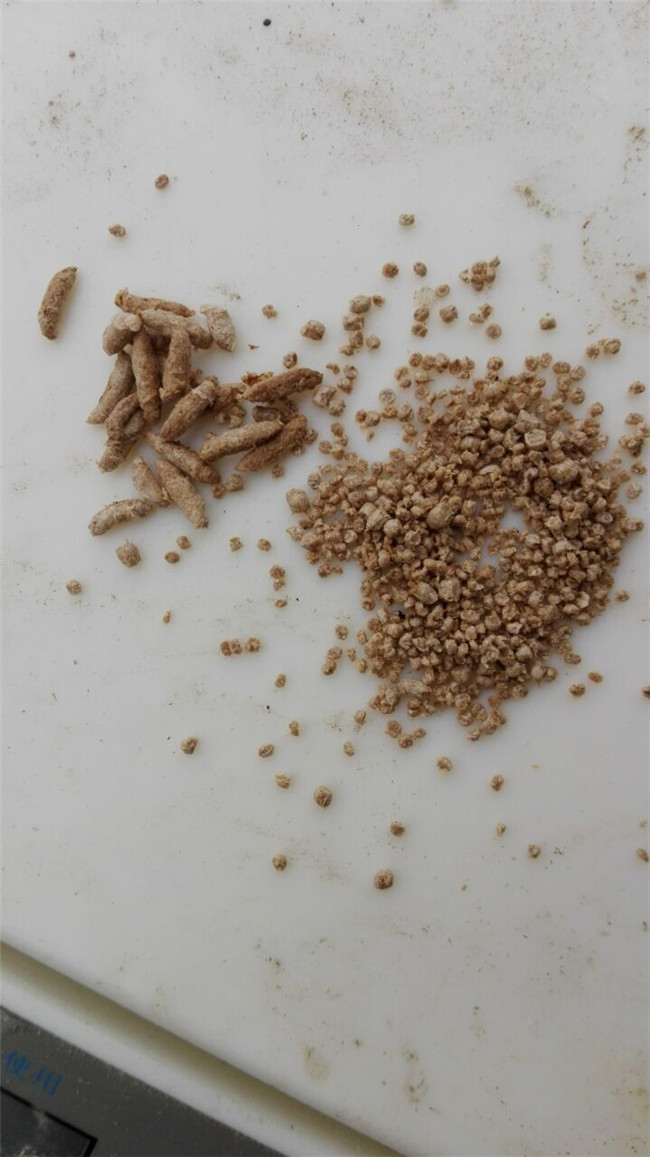 二.將麥皮,玉米粉,豆柏,魚粉等,加上復合預混料,按配方每市斤加入10-17%市斤清水,放入攪拌機攪拌均勻,約3-5分鐘,開動拌機攪龍,把料抽放儲蓄桶,由儲蓄桶攪龍抽入彭化機口。注意控制儲料桶關閘。由小到大。