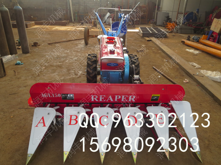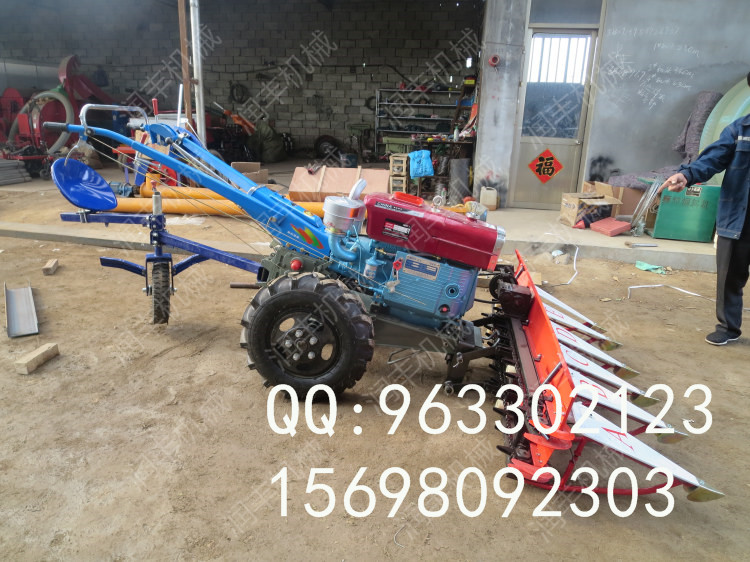 手扶割曬機(jī)配12-20匹的手扶拖拉機(jī)就可使用,可以收割水稻,三麥 辣椒 玉米 谷子等單棵直立作物.每小時(shí)收割6-9畝.