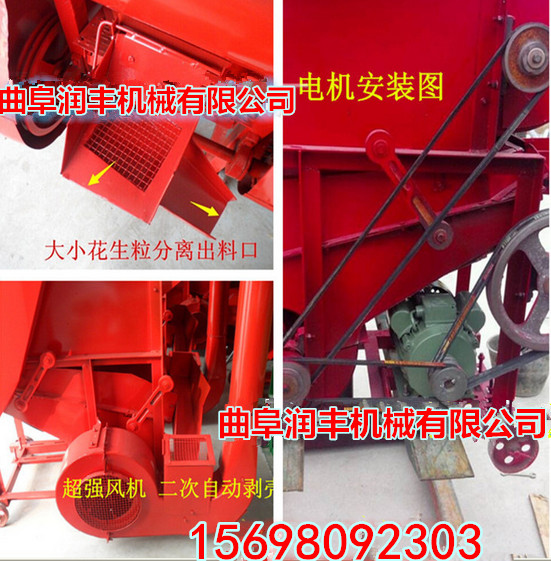 山東曲阜潤豐機械廠新研制的花生脫殼機械,雙風機,帶震動篩,脫殼率98%。碎米率5%以內,分檢清楚,殼米分離良好,震動篩可以把大小米區分,產量大,耗電少,是加工花生的理想機械。
