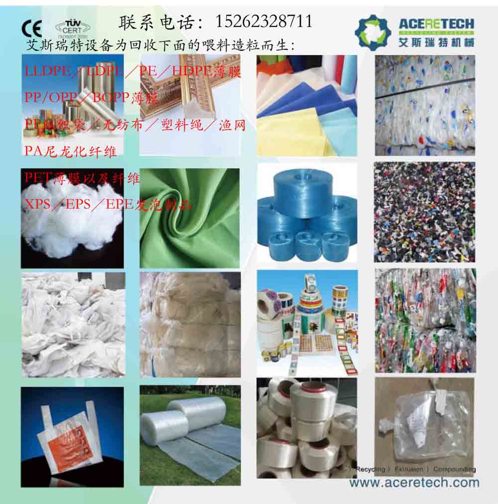 PP編織袋/無紡布/塑料繩/漁網回收造粒機是將廢舊、廢棄、邊角料、次品等進行回收造粒再利用,使其廢塑料可再生循環。艾斯瑞特公司可根據客戶的回料進行選配標準機型,也可根據客戶不同需求設計非標機型,艾斯瑞特歐洲技術團隊憑借自身對塑料回收清洗造粒機械四十多年的設計,開發,制造經驗,無論是從產品的外觀還是產品的性能都超越同行,同時公司擁有一批專業的售后服務,無論您是國內客戶還是國外客戶,我們均可到用戶工廠進行維護服務。