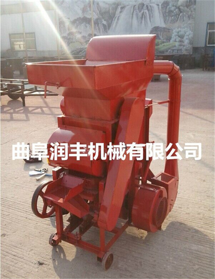 花生脫殼機有機架、風扇、轉子、單相電機、篩網(有大小兩種)、入料斗、震動篩、三角帶輪及其傳動三角帶等組成。