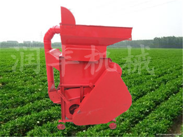 花生粒及破碎的花生殼在轉子的旋轉風壓及打擊下,通過一定孔徑的篩網(花生第一次脫粒用大孔篩網,清選后的小皮果更換成小孔篩網進行第二次脫殼),這時,花生殼、粒受到旋轉風扇的吹力作用,重量輕的花生殼被吹出機體外,花生粒通過震動篩的篩選達到清選的目的。
