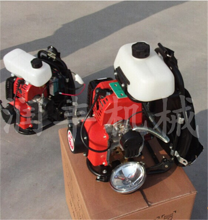 機器使用和維護: 請注意!??!一定按隨機的油瓶上的刻度按比例加油?。。。ㄆ?/span>20份機油1份混合后加入油箱)冬天使用時一定要把風門發(fā)在“關”的位置,用腳踩主發(fā)電機外殼拉啟動繩啟動,沒有離合器的機器啟動時請關掉大燈開關,或下掉一根電線,等于斷掉負載,這樣比較容易啟動,(自動伸縮繩啟動器的.啟動時不要把伸縮繩全部拉出,一般拉到95%就可以了,否則容易導致繩子收不回的后果)啟動后把風門返回“開”預熱幾分中后在加油門,發(fā)電機尾部有一個螺桿(接線端 ) 是接大燈上的一根電線用的,大燈另外一根線是任意搭鐵,就行了,大燈電線不分正負極。經常檢查調節(jié)皮帶松緊度,一般把皮帶稍用力皮可以向下0.8cm適宜。