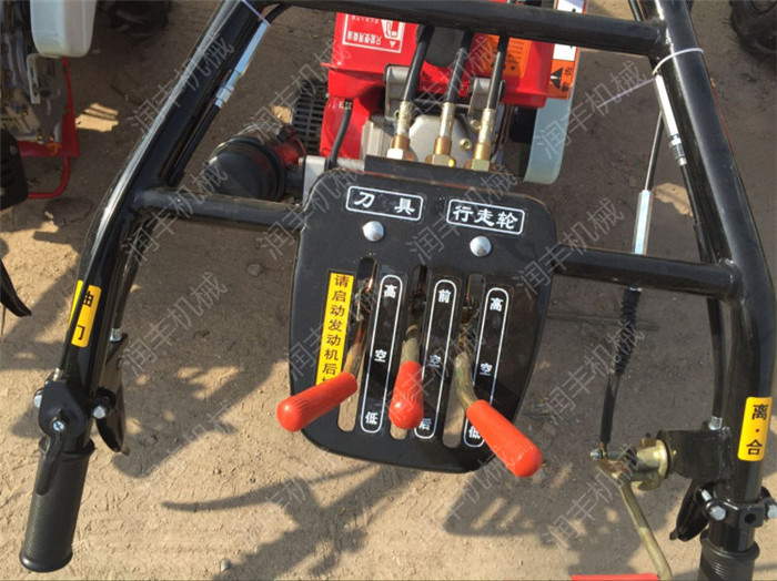 該機扶手把高度3檔調(diào)整,左右360度任意旋轉(zhuǎn),配有轉(zhuǎn)向離合器方便轉(zhuǎn)向。主要用于大姜、大蔥、土豆等經(jīng)濟作物種植開溝、培土和溫室大棚種植瓜果、蔬菜等作物旋耕、開溝等。
